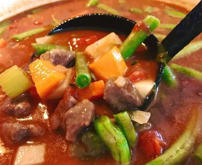 Stir in green beans and simmer 15 minutes longer, or until all of the veggies and beef are tender.